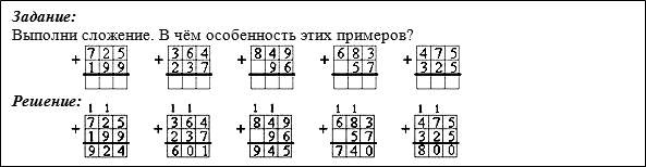 Расскажите, как вы рассуждали при решении примера на сложение трёхзначных чисел с переходом через два разряда, и было ли место в ходе ваших рассуждений, где вы засомневались. (…)