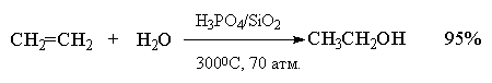 H 3 C - CH = CH 2 + H - OH → H 3 C - CHOH - CH 3 (изопропиловый спирт)