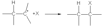 На второй стадии карбокатион реагирует с анионом X — , образуя вторую s -связь за счет электронной пары аниона: